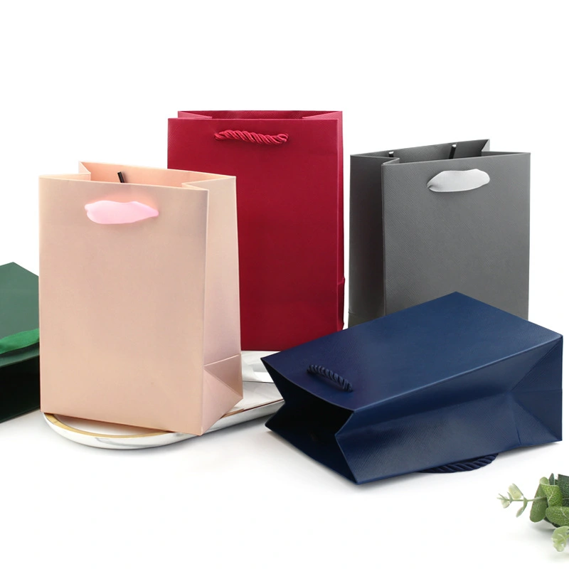 | Vantagens Estruturais | Parte inferior reforçada e área da alça para maior durabilidade O papel texturizado adiciona toque de luxo e toque premium Leve, mas resistente para uso diário no varejo Design de dobra plana para armazenamento e envio econômicos |
